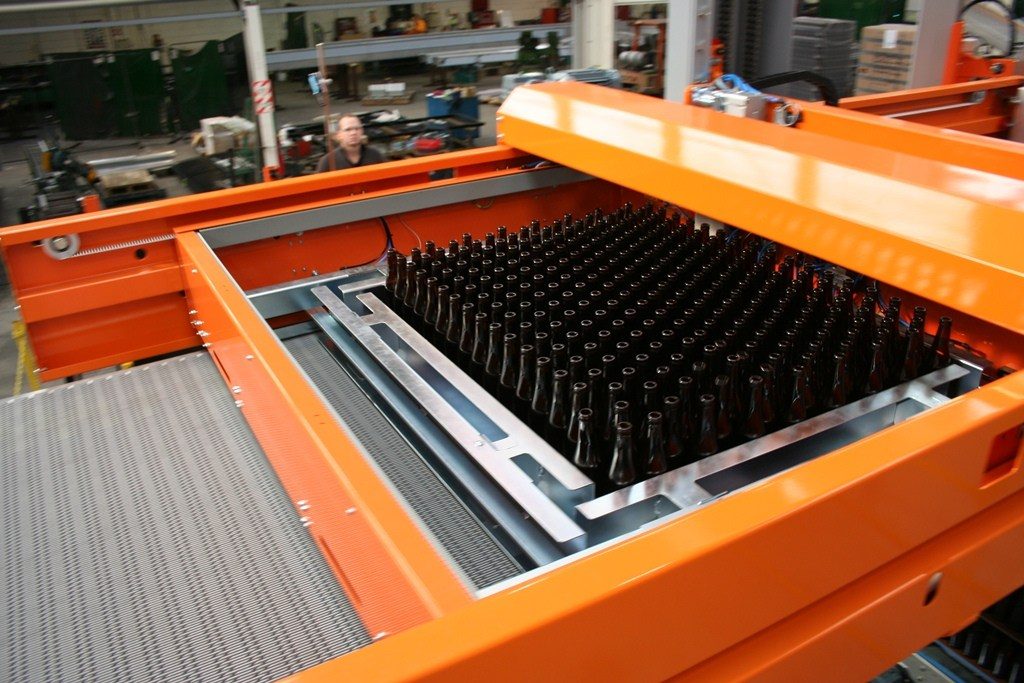 The PHS300 Bulk Depalletizer is a fully integrated automatic Depalletizing system, which boasts an extremely flexible modular design. It can depalletize a wide range of products including glass bottles and jars, PET bottles and containers, and cans. The system automatically removes and stacks Tier / Layer Sheets, Top Frames, and empty pallets.
