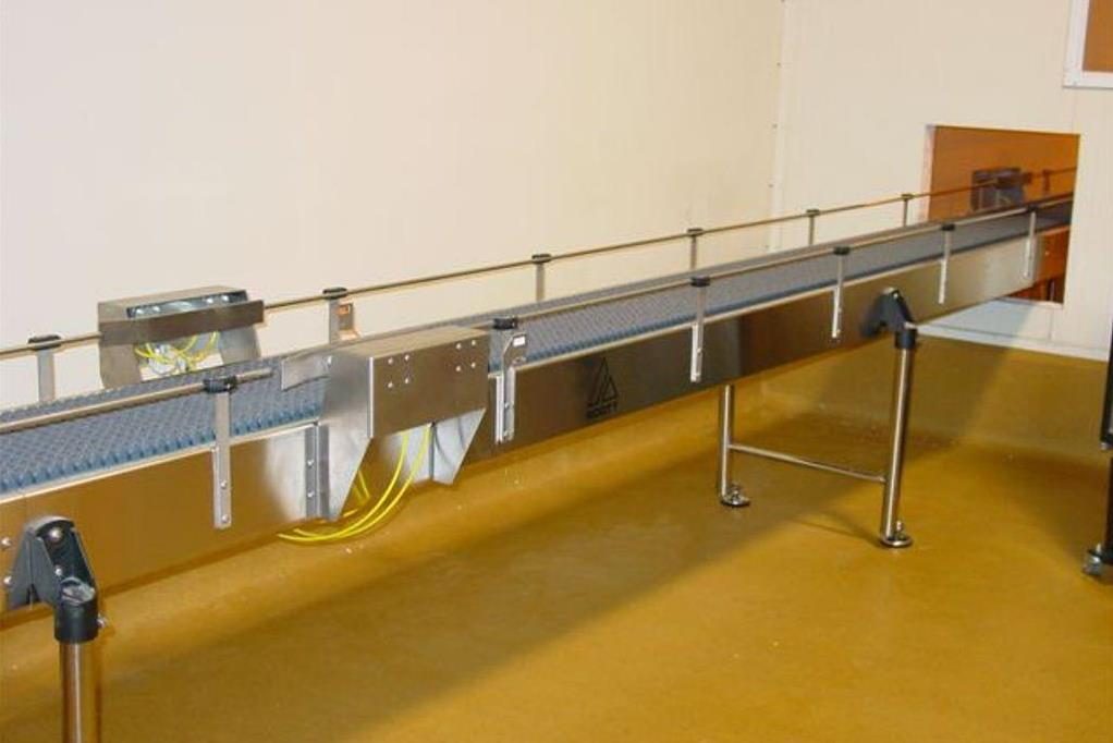 - Integrated cross-overs from conveyor to conveyor, with no deadplates (ie, chain to chain)