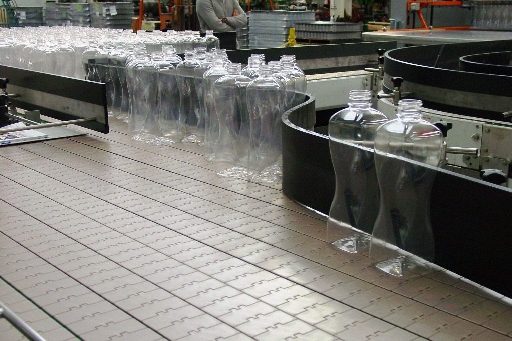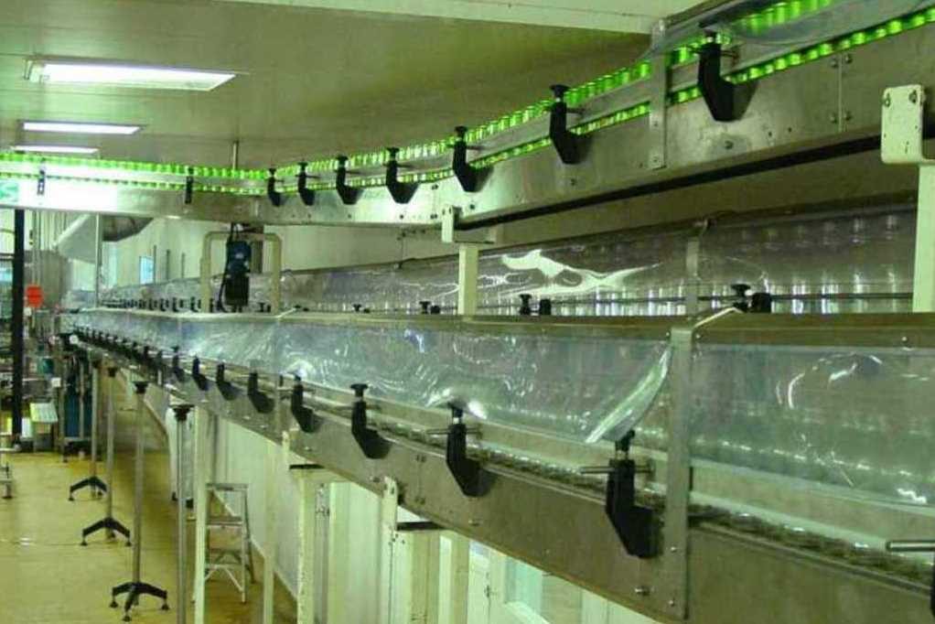 PHS Innovate offers the complete range of mass-flow mat-top and slat-chain conveyors for transporting and accumulating cans, bottles, jars, and other packaged products.